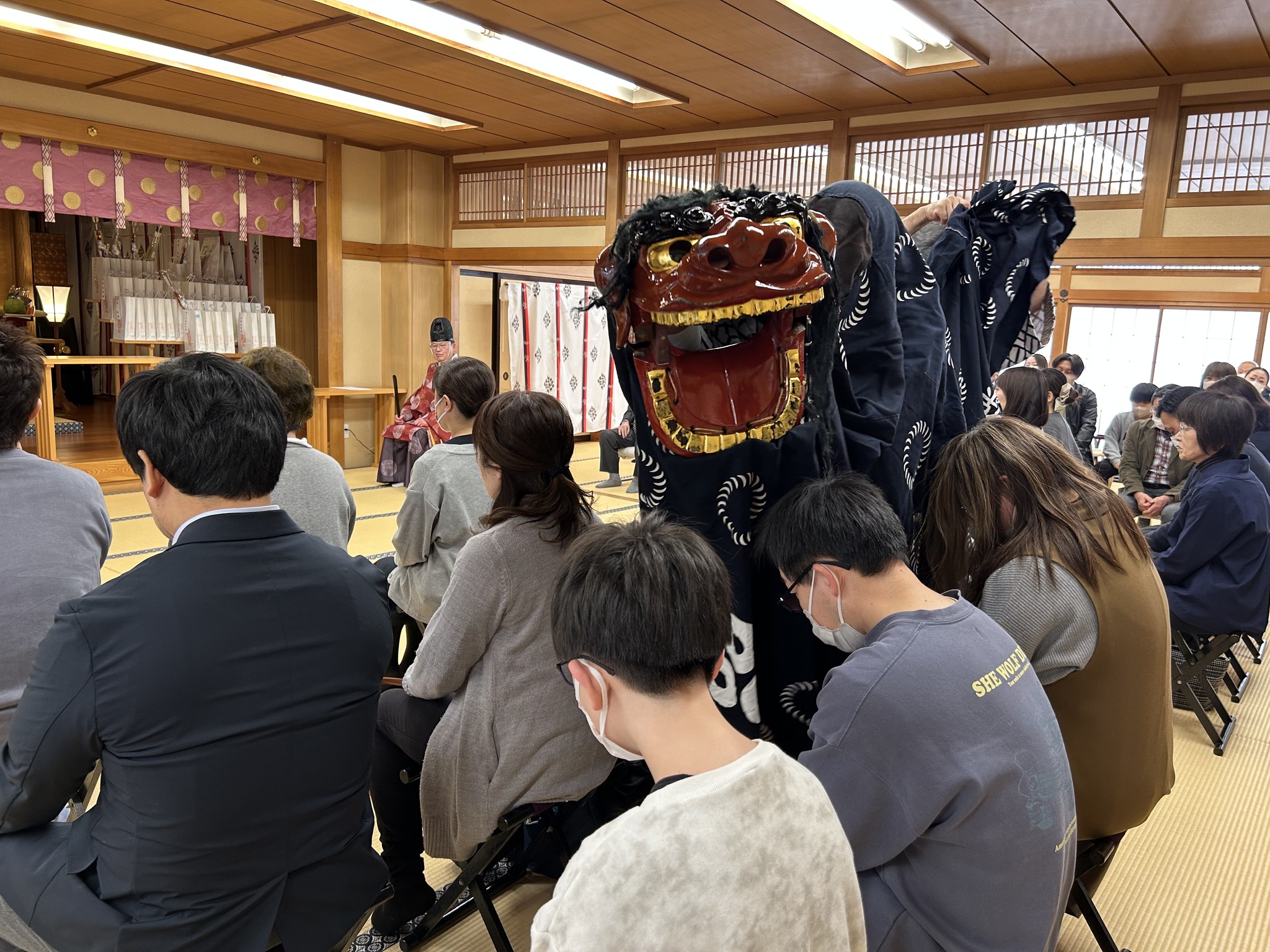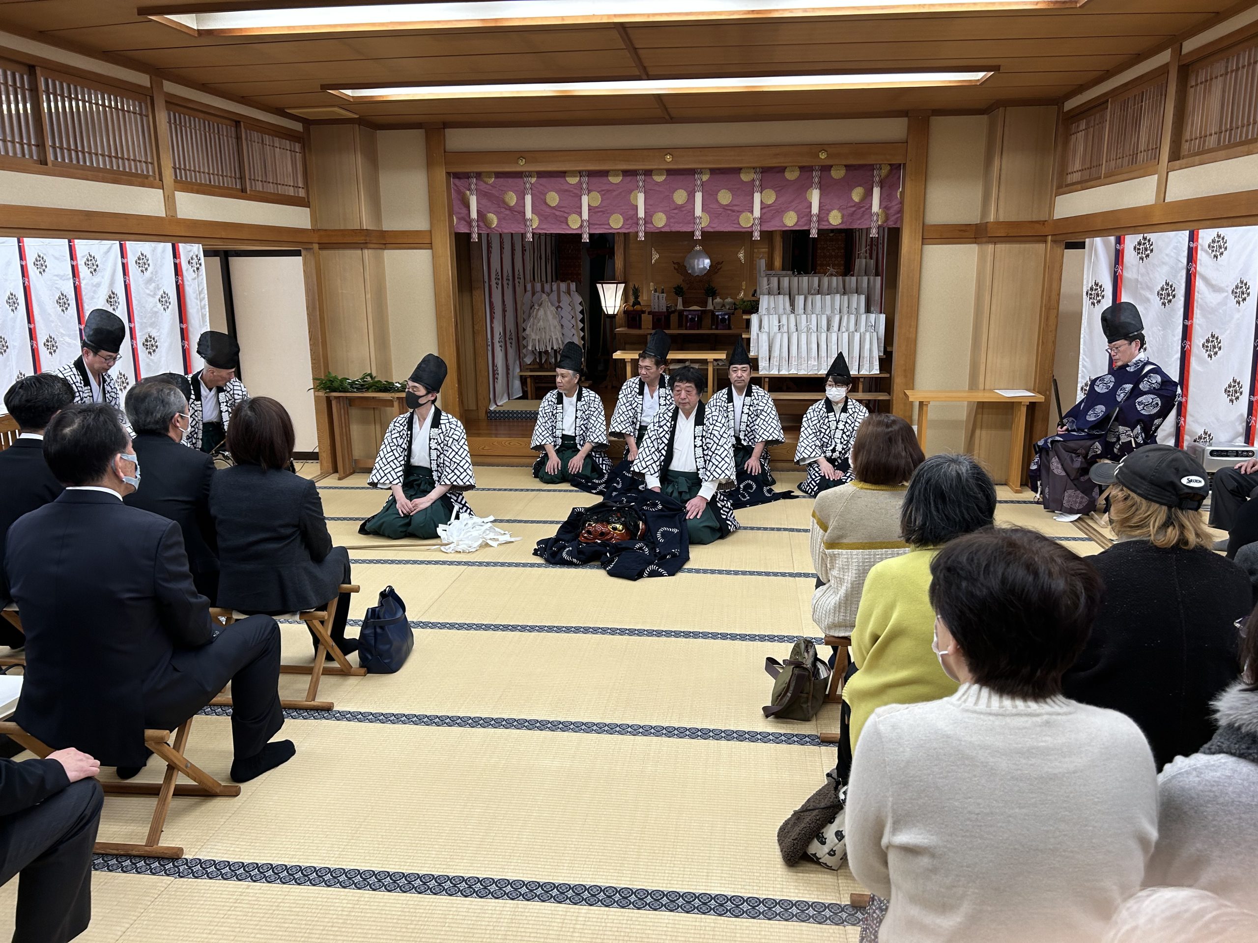 今年は61回目、干支厄除祭も還暦を迎え、節目の年となりましたが、コロナ禍において大人数でのご祈祷が叶いませんでしたが、崇敬者を代表して当神社の役員にご参列を賜り、例年の通りに年男・年女の参加者の皆様のお名前を祝詞で奏上し、獅子舞神楽をして除災招福、今後のご健勝をご祈念申し上げることが出来ました。