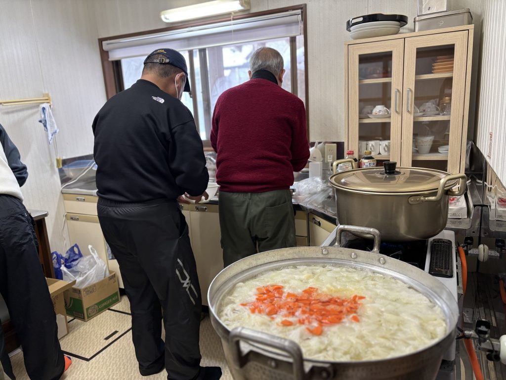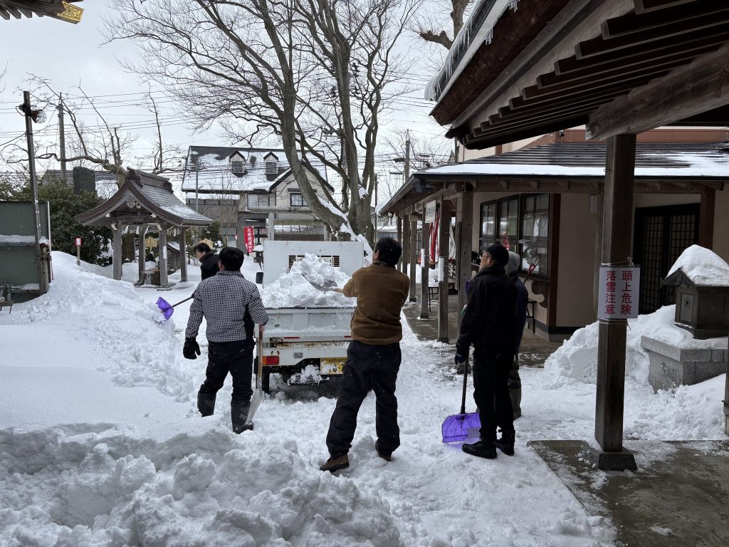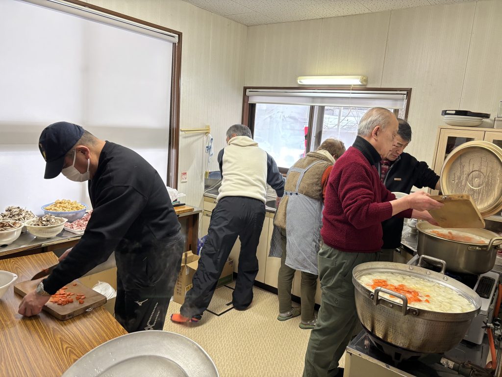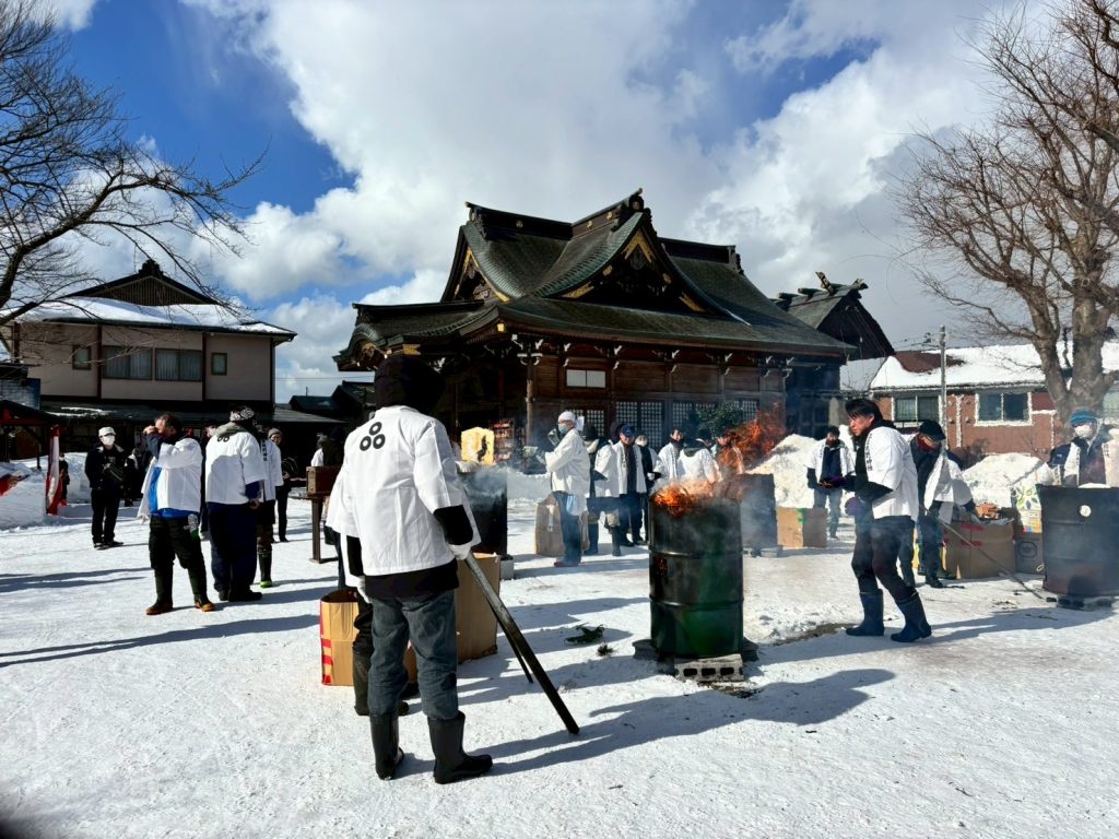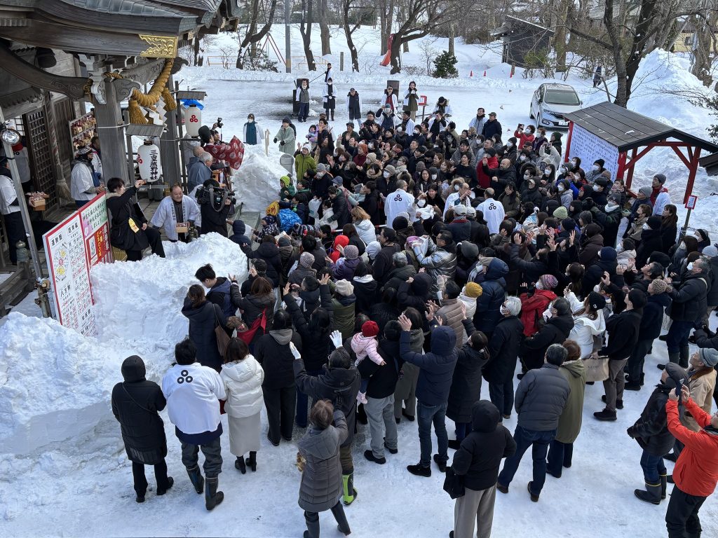 “恒例のどんど祭、節分祭豆撒き神事では、御神酒、けんちん汁やお菓子の振る舞い、